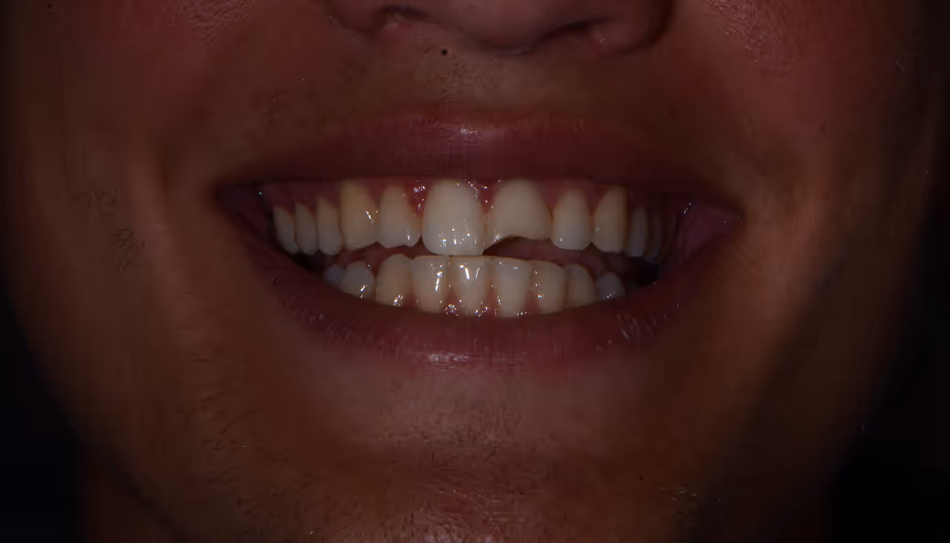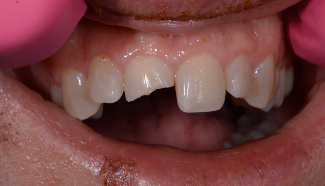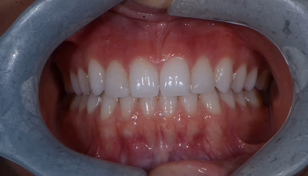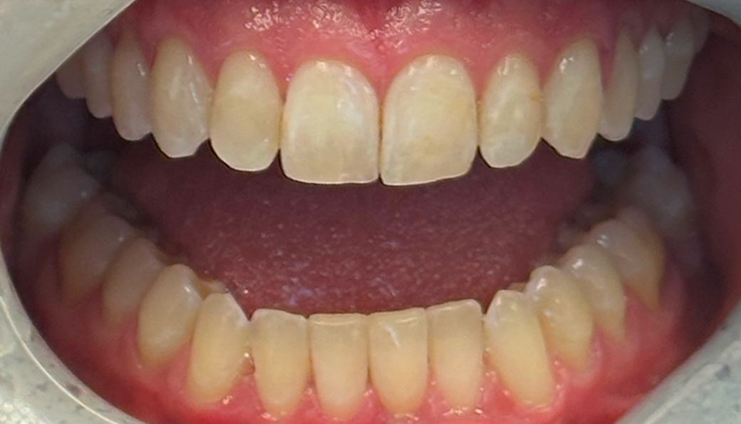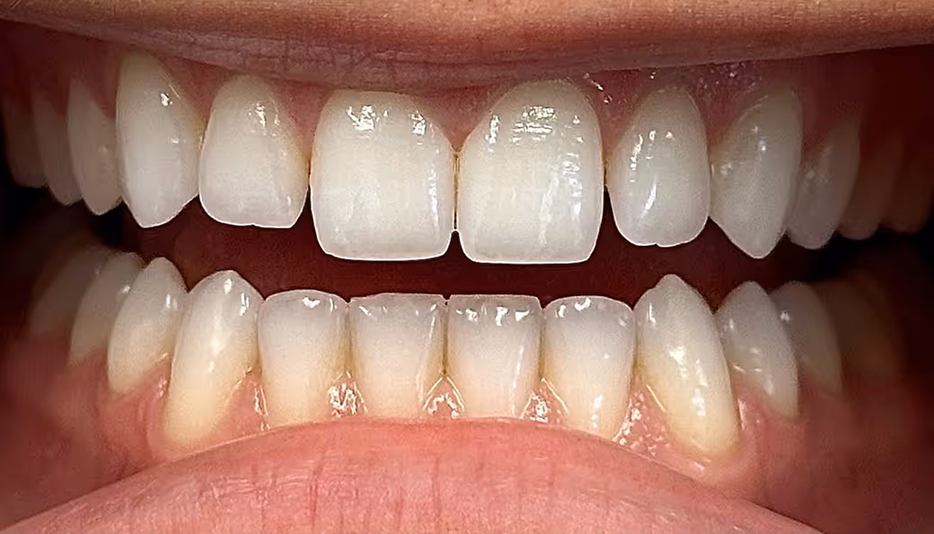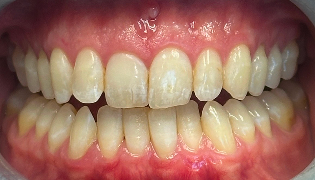 Composite bonding to re-establish length of upper central incisors